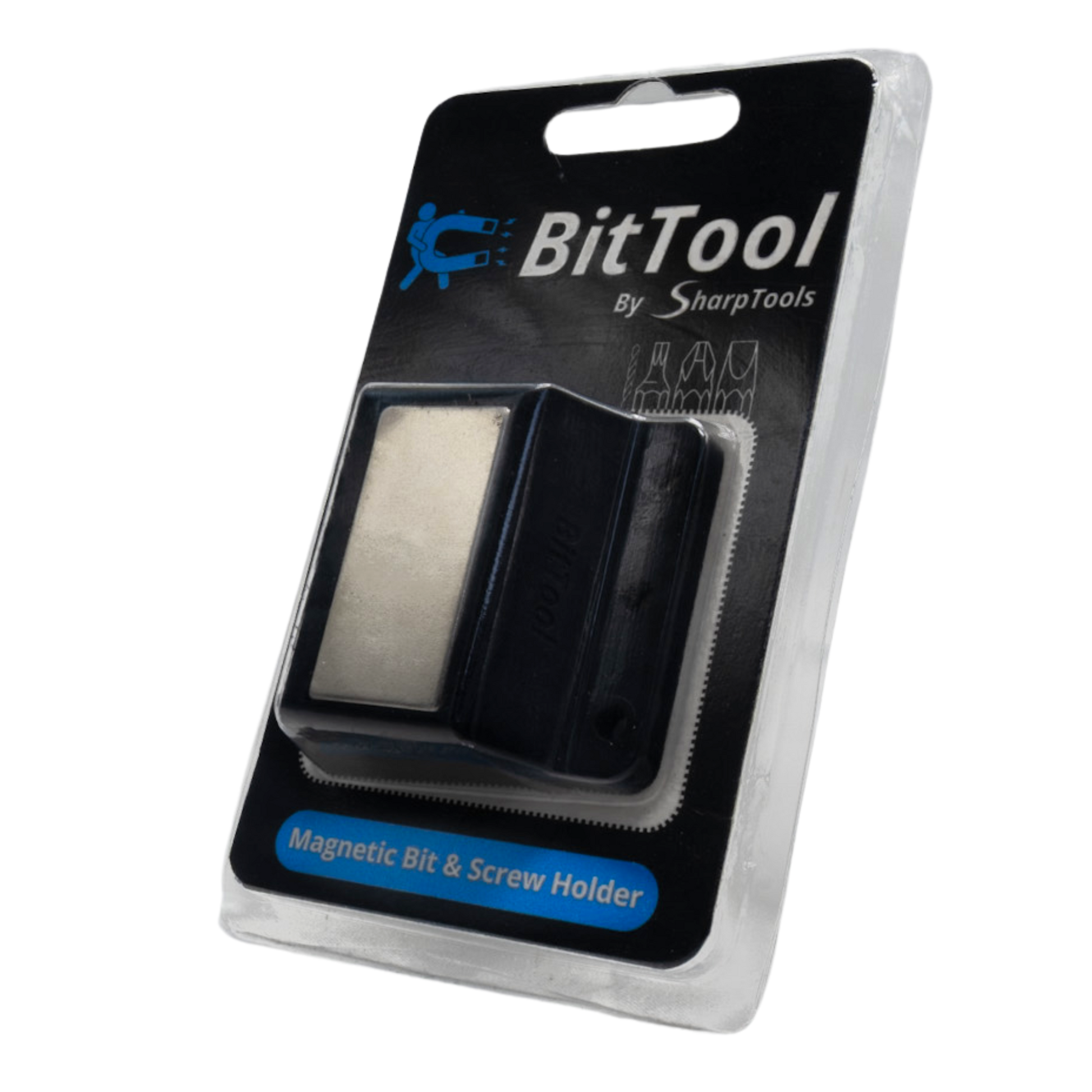 Le BitTool de SharpTools garde vos embouts et vis toujours à portée de main. Grâce à son puissant aimant en néodyme, tout reste bien en place — pour travailler plus vite et plus efficacement.